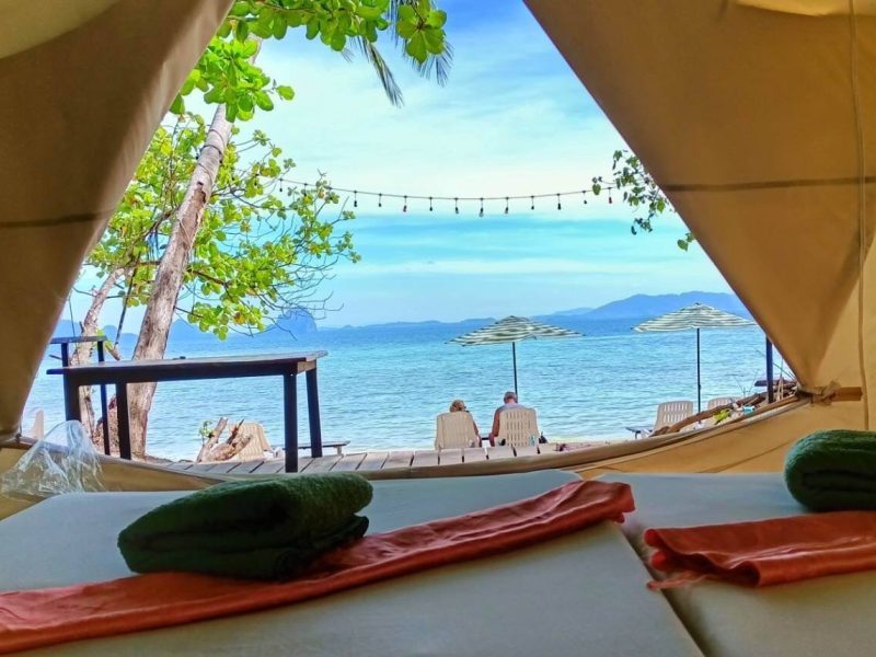 ที่พักเต็นท์ขนาดใหญ่บนชายหาดท่ามกลางธรรมชาติ